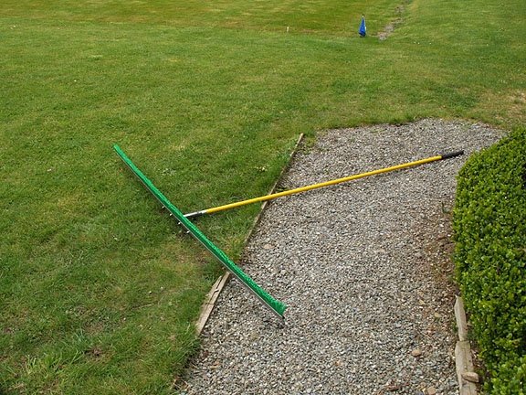 Each day the groundskeeper would groom the croquet court with this cross between a broom and a rake.