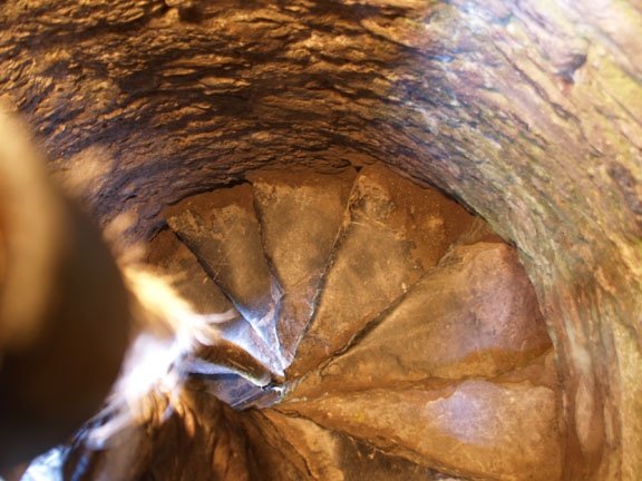 Jim took this photo as we climbed to the top of the castle with only the available light in the stairwell. The "hairy" thing at the left is a large rope which served as a kind of banister to hold onto as you climb up.