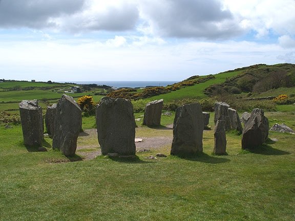 You can see the ocean past the stone circle.