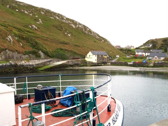 Arriving at Cape Clear Island. The building in the center of the picture is the café. It would figure into everyone's plans later on.
