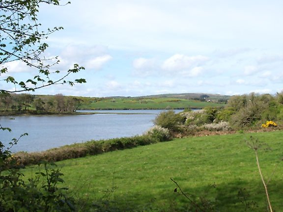 Here's a view of the tip of Inish Beg Island (where the trees are at the water's edge) as seen from the road from Skibbereen (R595) across the Riven Ilen estuary.