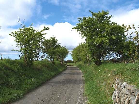 When leaving the estate, you first go down this little lane. The rock walls, trees, and vegetation on the sides are very typical.